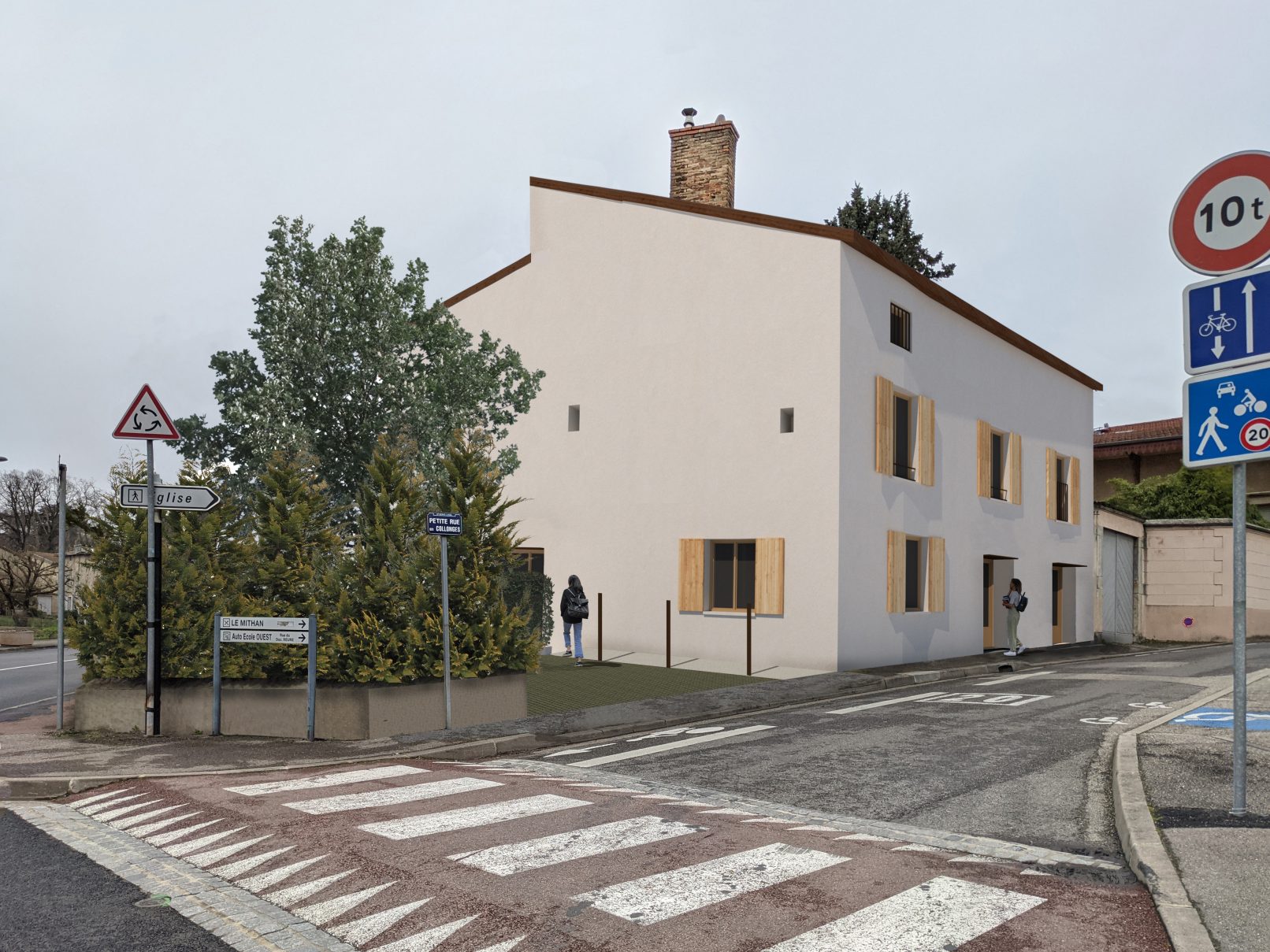 Le projet consiste en la rénovation d’une maison à Saint-Genis-Laval afin d’aménager trois logements sociaux. Notre intervention se veut simple, juste et harmonieuse avec l’objectif de mettre en valeur les éléments caractéristiques de la maison : sa situation urbaine à l’angle de deux rues, sa volumétrie, ses menuiseries bois aux dimensions variées et ses volets battants bois.